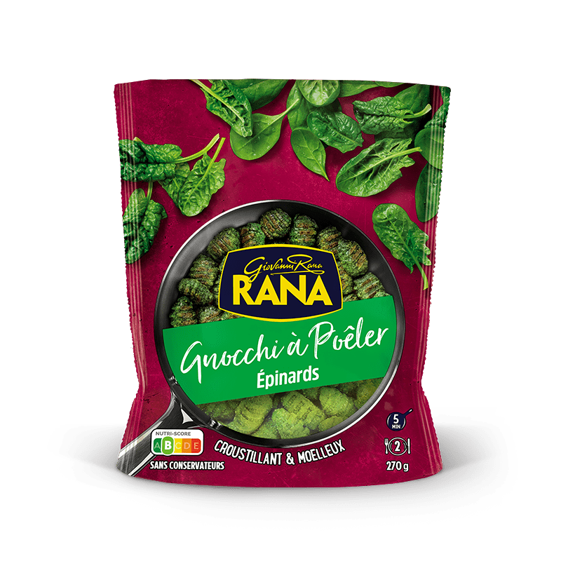 Les six variétés de saveurs allant du classique aux propositions plus gourmandes, conçues pour accompagner votre créativité en cuisine avec la qualité qui nous caractérise. En effet, les Gnocchi à poêler Giovanni Rana ne contiennent ni conservateurs, ni huile de palme.