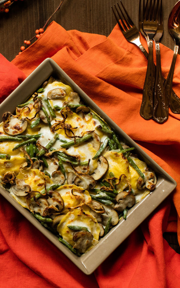 GRATIN DE GIRASOLI LEGUMES DU SOLEIL, AUX HARICOTS VERTS ET AUX CEPES