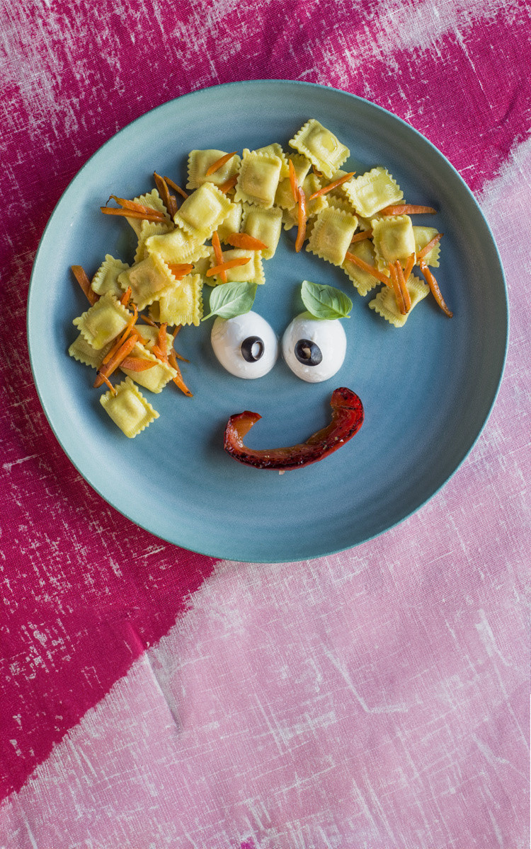 RAVIOLINI VACHE QUI RIT ®, MOZZARELLA, CAROTTE, POIVRON & OLIVES